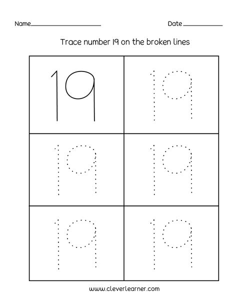 Use This Worksheet To Learn And Practice Tracing Number 19.