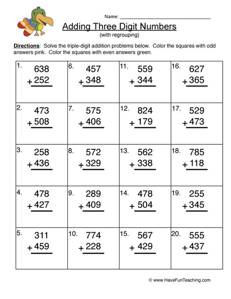 3rd grade homework sheets printable Large Print 3Digit Plus 3Digit from www.pinterest.com