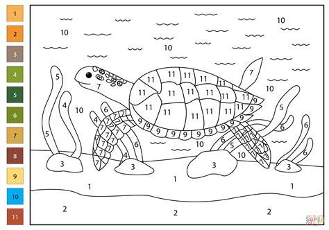 Turtle Color By Number. Turtle in pond color by. Color by number coloring pages are a fun way for kids of all ages, adults to develop creativity,.