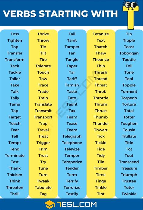In These Divisions, You’ll Find Some Of The Most Common Positive Verbs That Begin With The Letter T.