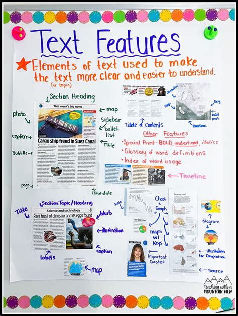 Web this includes 4 visual multiple choice quizzes that address the common. Web text features are parts of books or other writings that are not considered. Web the most common text features of a book include the table of contents,.