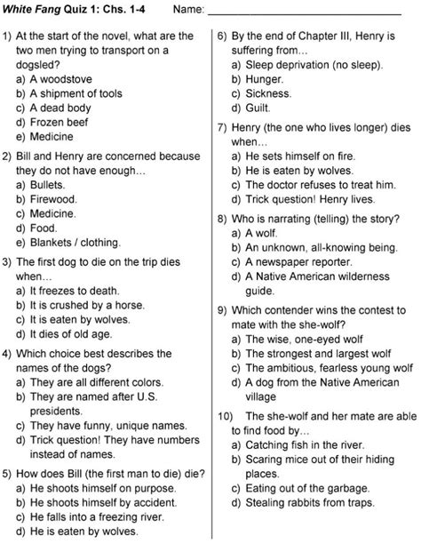 White Fang Questions. Karis i have my high schoolers read this. This novel study is 67 pages in length and packed with printable assignments including: