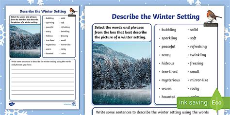 Web Help Support And Develop Children's Creative And Extended Writing Skills This Winter With This Useful And Engaging Winter Scene Descriptive Word Mat.