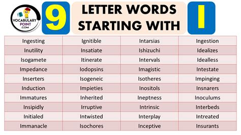 Some examples include ice, igloo, ink, idea, ignite, image, imagination, impressive,. Web words that start with i: Please see our crossword & codeword, words with friends or scrabble word helpers if that's what you're looking for.