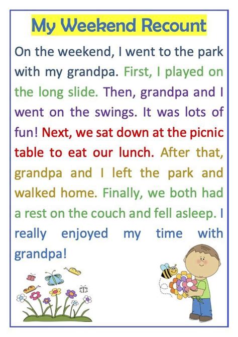 Writing About Your Weekend. To do this, you can make it personal with your own memories and experiences. Try to make your writing interesting for the reader.