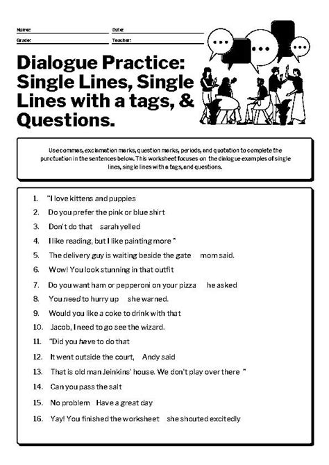 If your students struggle with dialogue writing and correct use of quotation marks in their. If you’re looking for more. This dialogue exercise is one in artificial limitation: