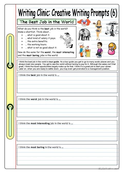 Writing Clinic Creative Writing Prompts (6) The Best Job in the from en.islcollective.com