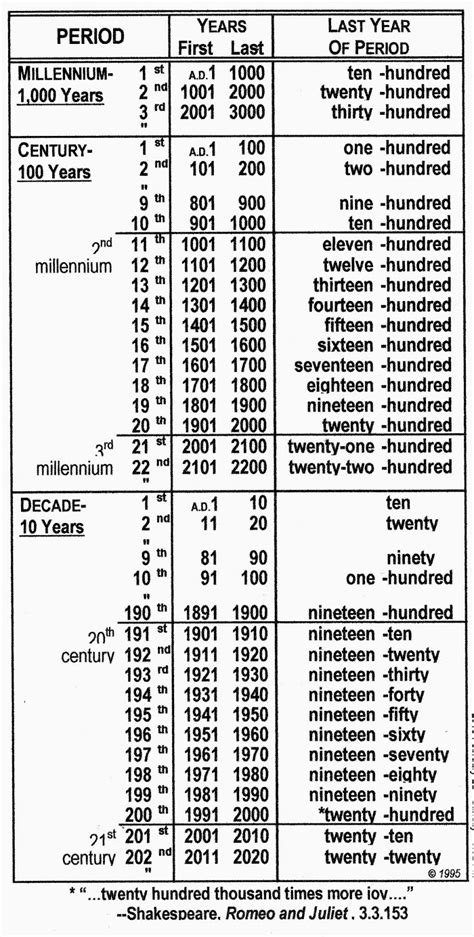 Year Decade Century Millenium Eon. 12 months = 1 year: The 1990s, began in 1991 and.